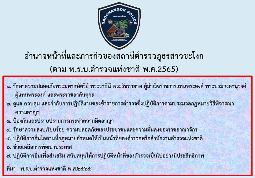 การกำหนดอำนาจหน้าที่หรือภารกิจของสถานีตำรวจภูธรสาวชะโงก